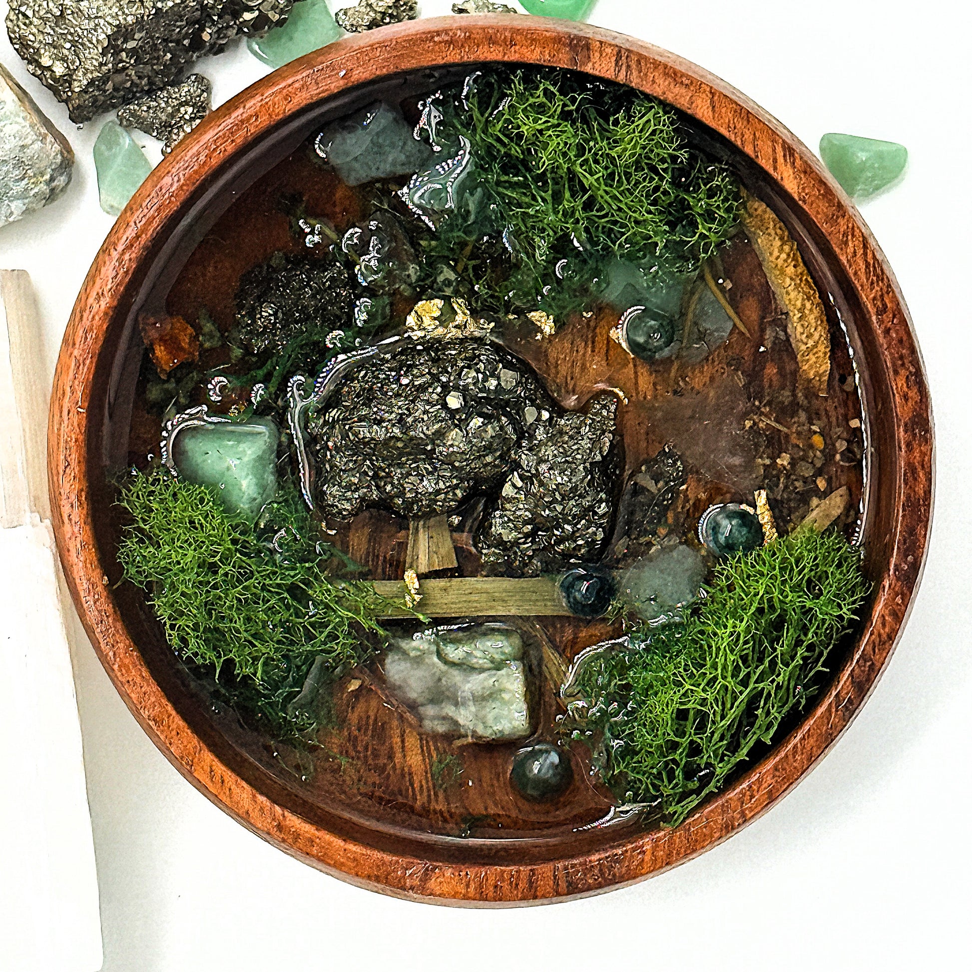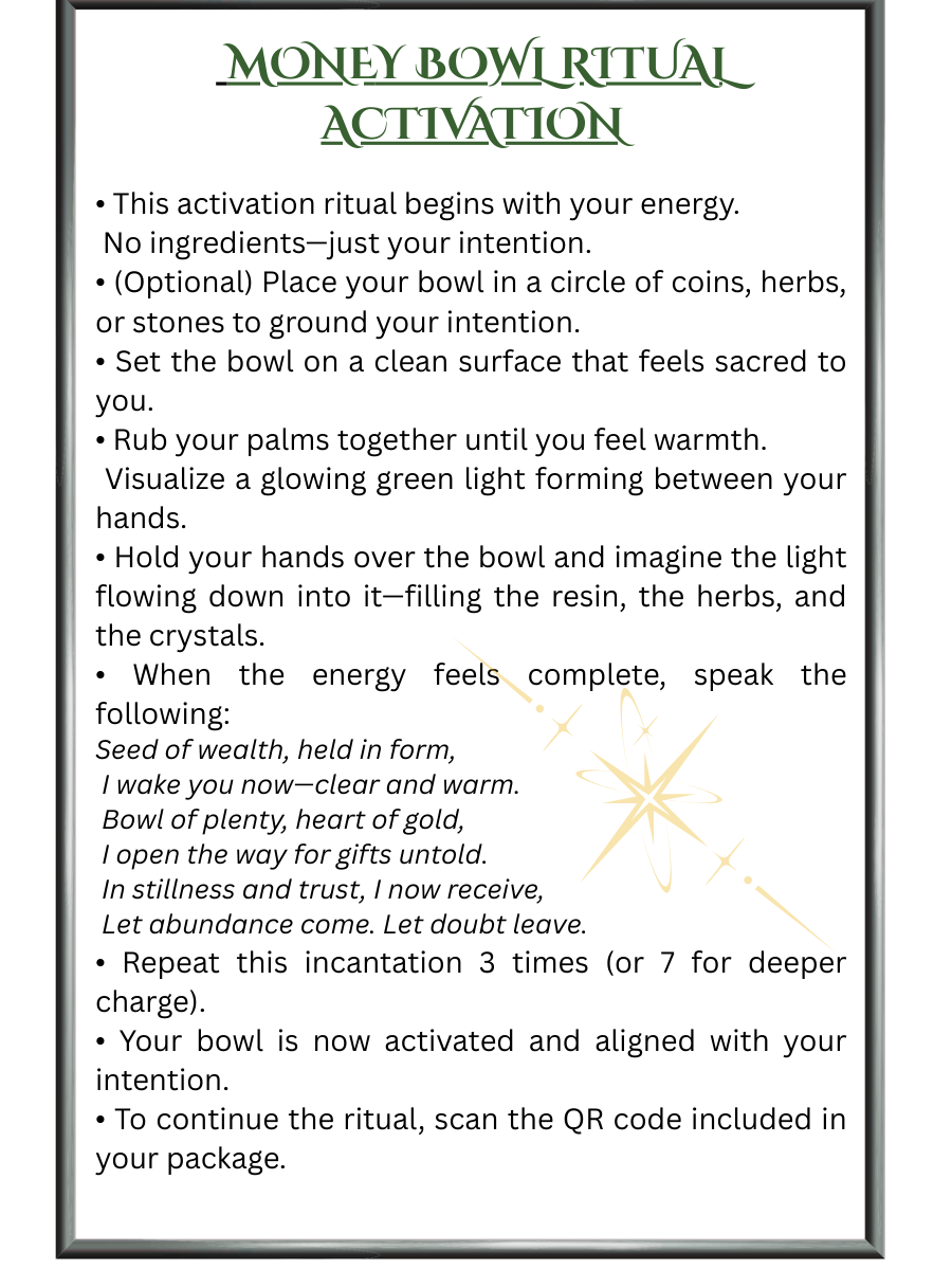 Attract prosperity, success, and financial abundance with this handcrafted Money Bowl, infused with the powerful energy of Aventurine, Pyrite, Moss Agate, and a sacred herbal blend. Designed for manifestation, wealth attraction, and abundance rituals, this bowl serves as a beautiful focal point for intention-setting, money spells, and financial prosperity.