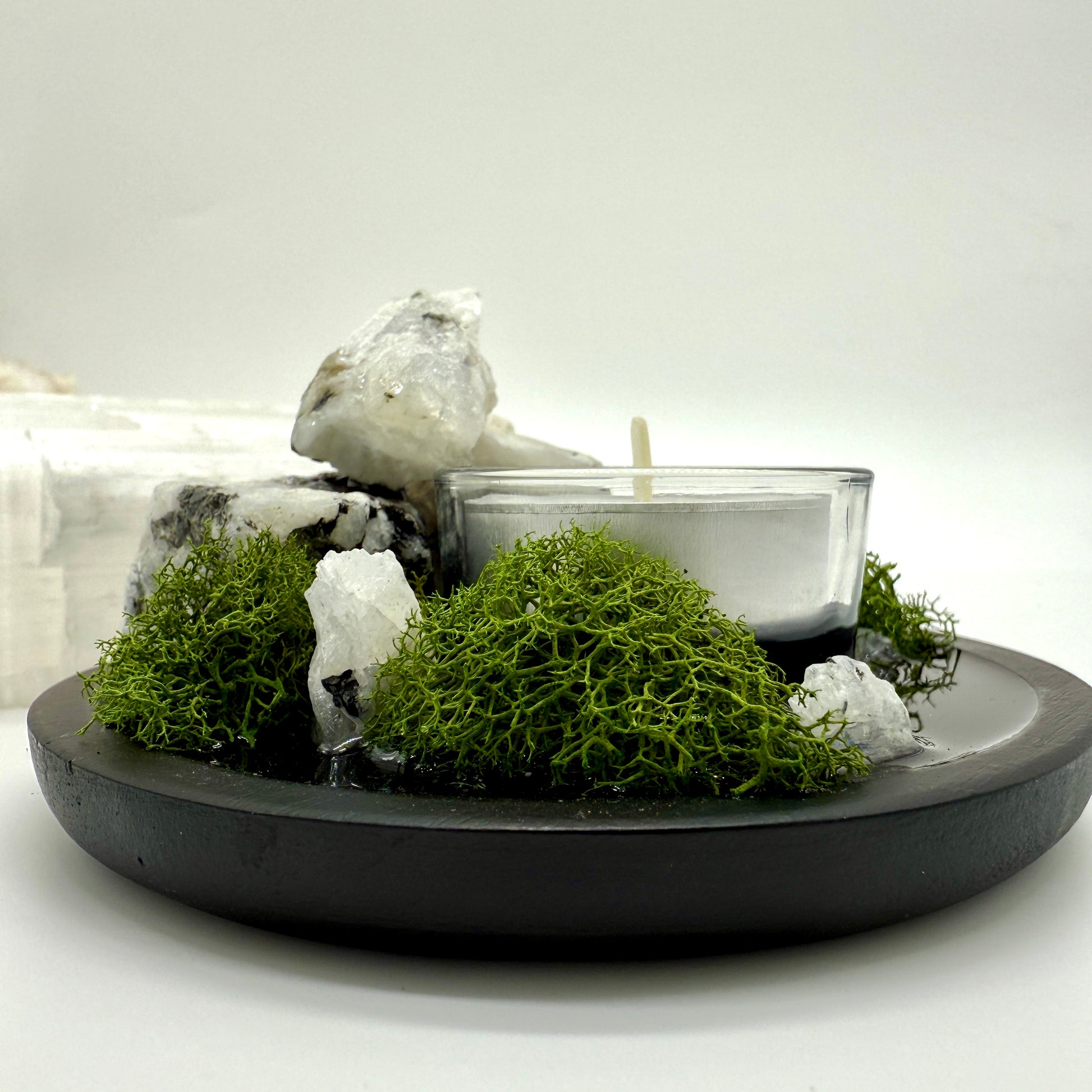 Featuring a 5-inch acacia wood coaster, crystal-infused resin, and a tea light holder, this altar serves as a sacred tool for embracing change, enhancing intuition, and deepening your connection to the divine feminine energy.