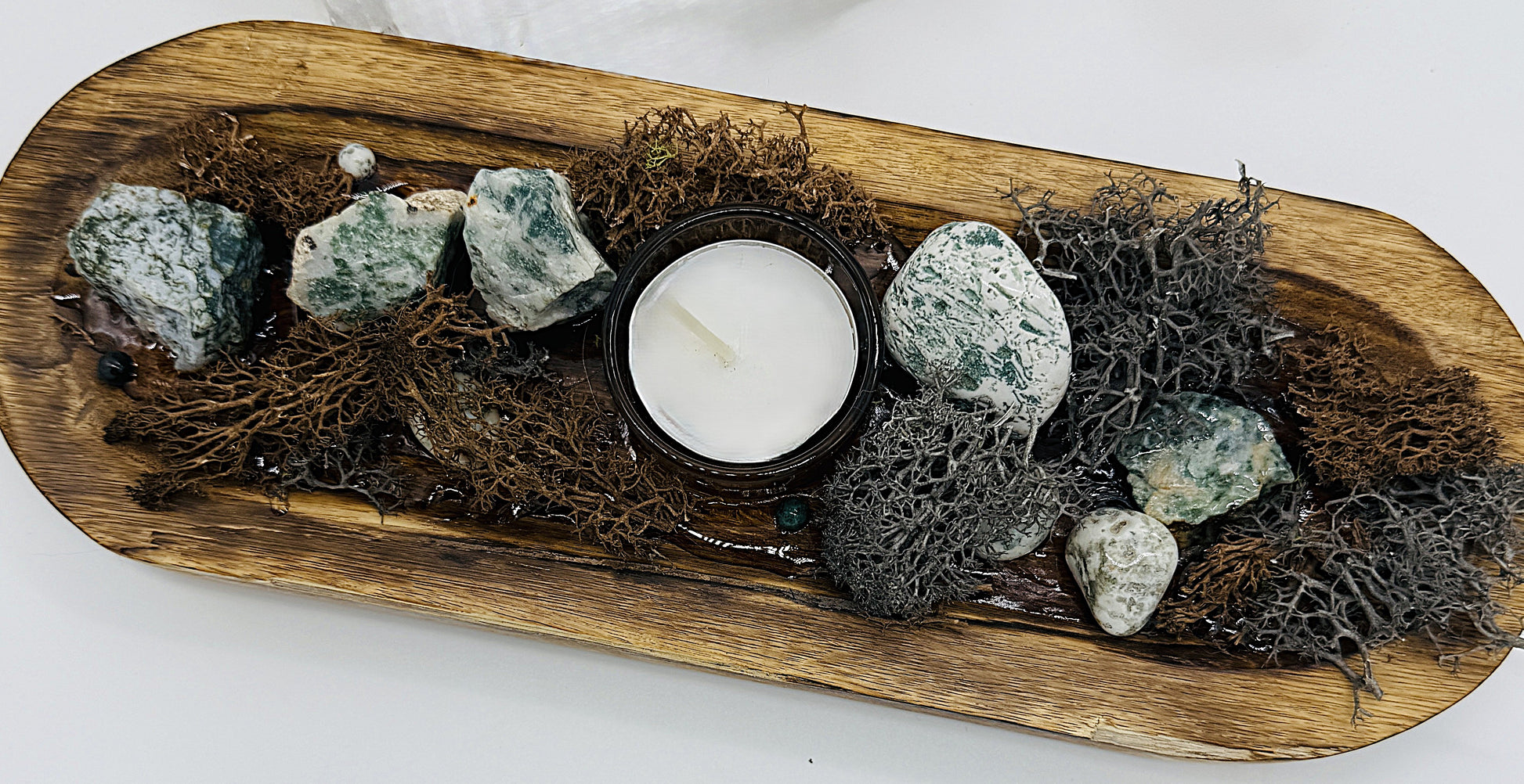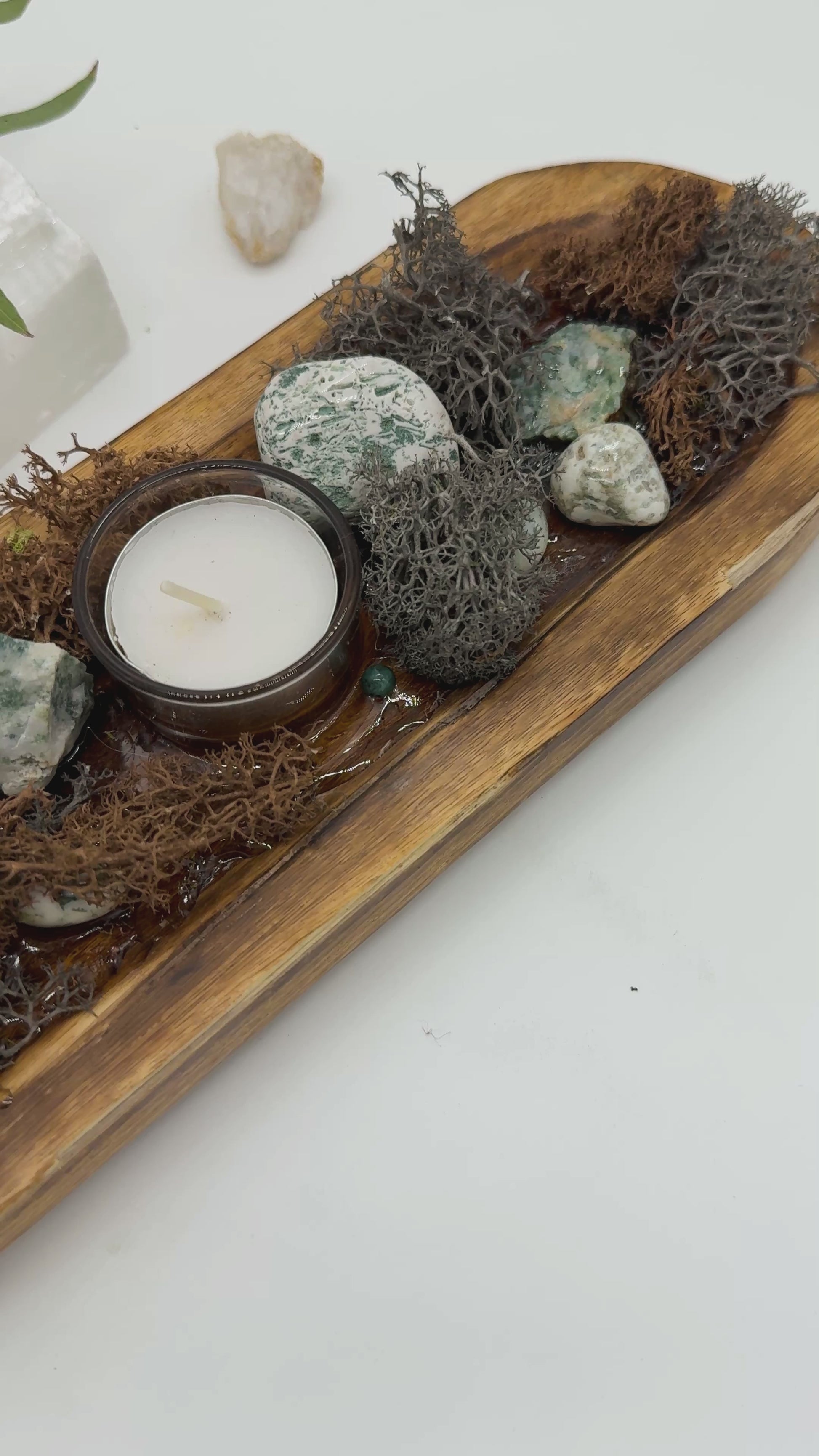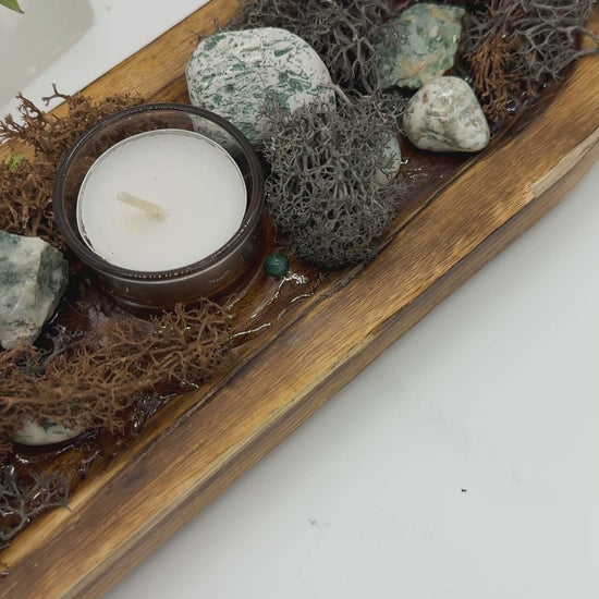 Cultivate inner peace, resilience, and a deep connection to nature with the grounding energy of Tree Agate. This Tree Agate Meditation Altar is designed for intention-setting, emotional balance, and spiritual growth. Featuring an oblong acacia wood coaster, crystal-infused resin, and a tea light holder, this altar serves as a powerful tool for fostering stability, personal growth, and alignment with the natural world.